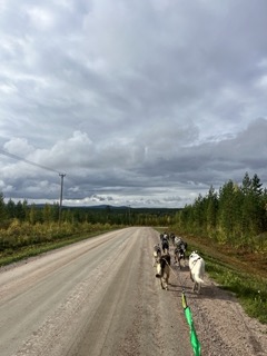 We've had a few setbacks with high temperatures (ideally, we would only train the dogs if the temperature is 12°C or under), and due to the hunting season, we couldn't train at all for multiple weeks in September. We're currently testing a few short loops from the kennel (7km), but next week we'll start stacking up the kilometres to 15km, and then 20-25km per run. We try to keep the dogs trotting at a speed of 13km/hr, but you always have to match pace with the slowest dog in the team.